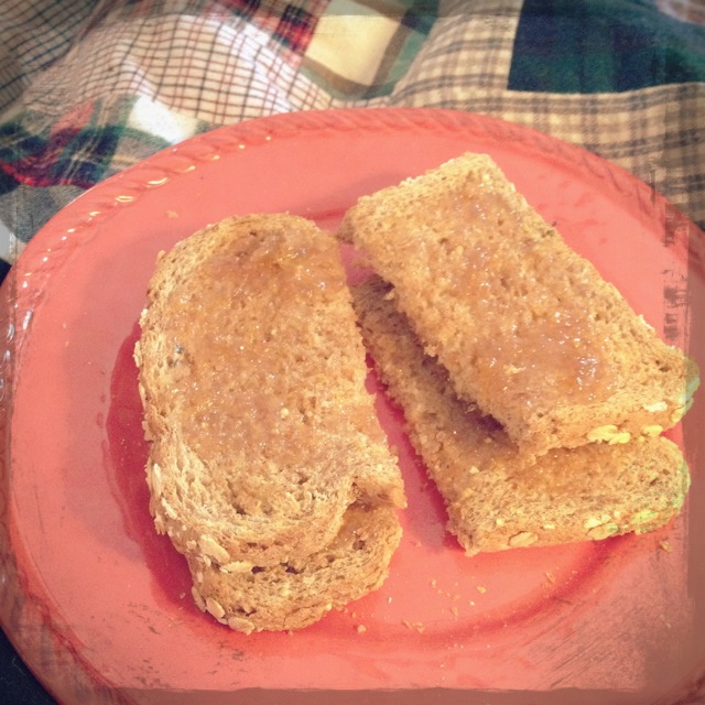 My stomach growls. Geez, I just ate a couple of hours ago, and I’m already hungry. This is a problem with being at home. You can satisfy these callings quite easily with a kitchen at hand. I climb out of bed, hike off to scrounge up some food and settle on a couple of slices of toast with some sensuous farmer’s market orange rhubarb jam. Mmm. . . better get some more tea, too, while I’m here. Save time. I can’t be wasting time, you know.