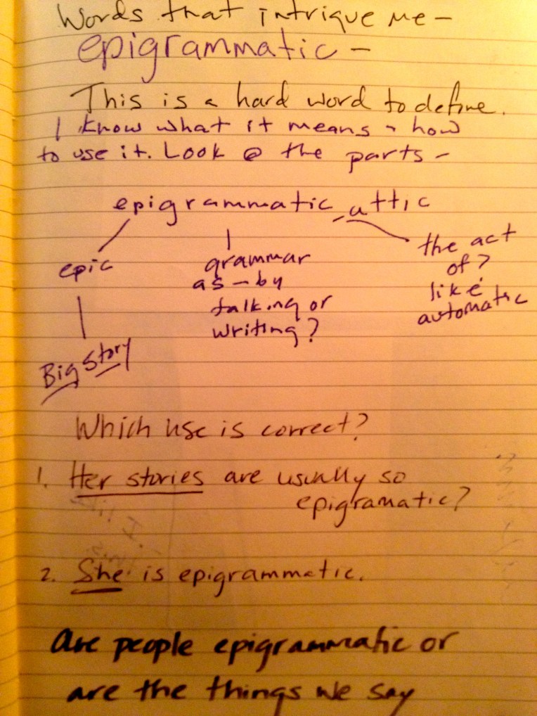 The house quiet, the snow falling. My notebooks overflowing with some nuggets of gold in there, each screaming to be chosen by me to write about today.
