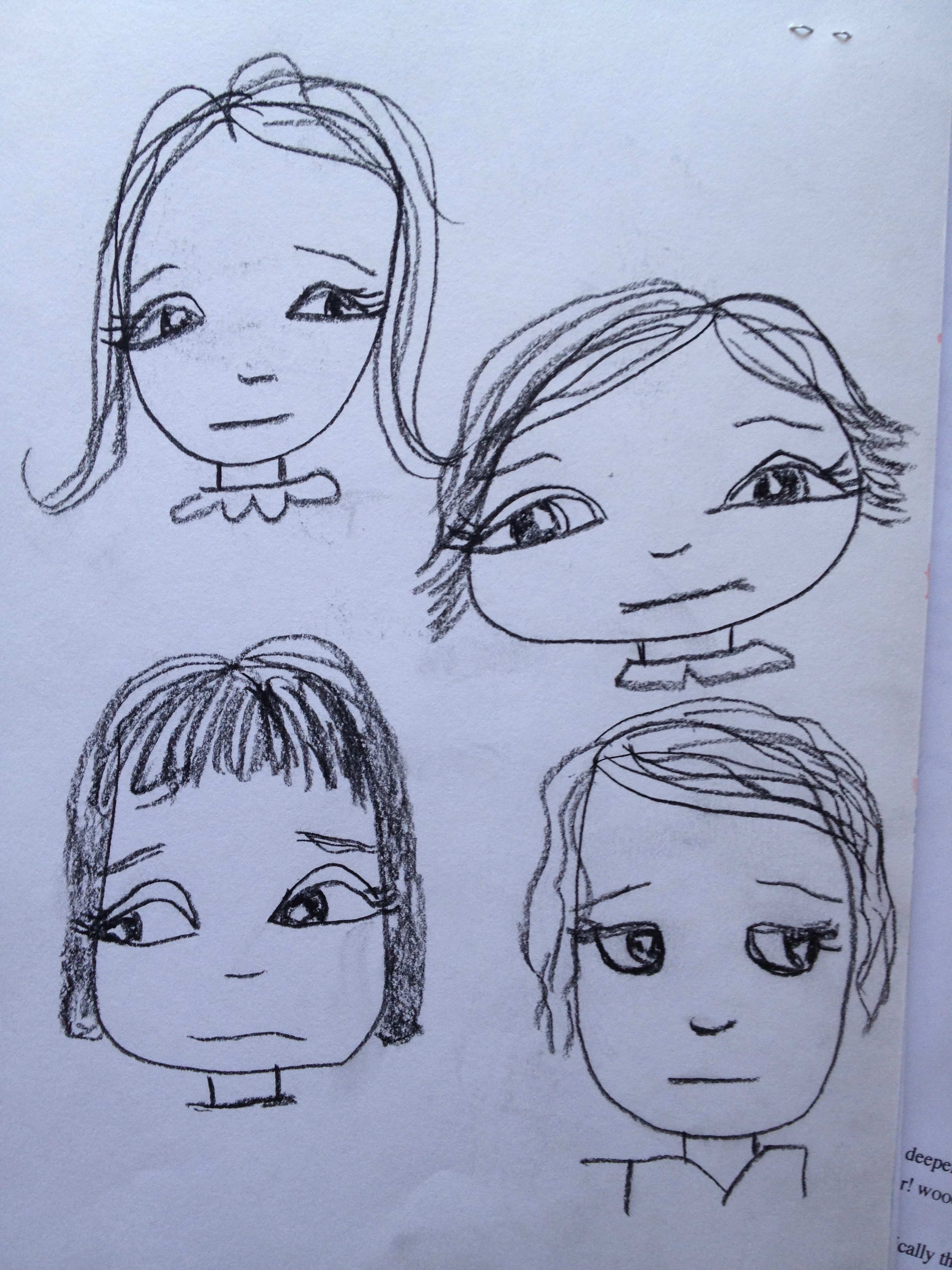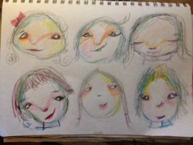 We started out drawing lots of faces using Mindy’s techniques.  Here are some of my attempts: