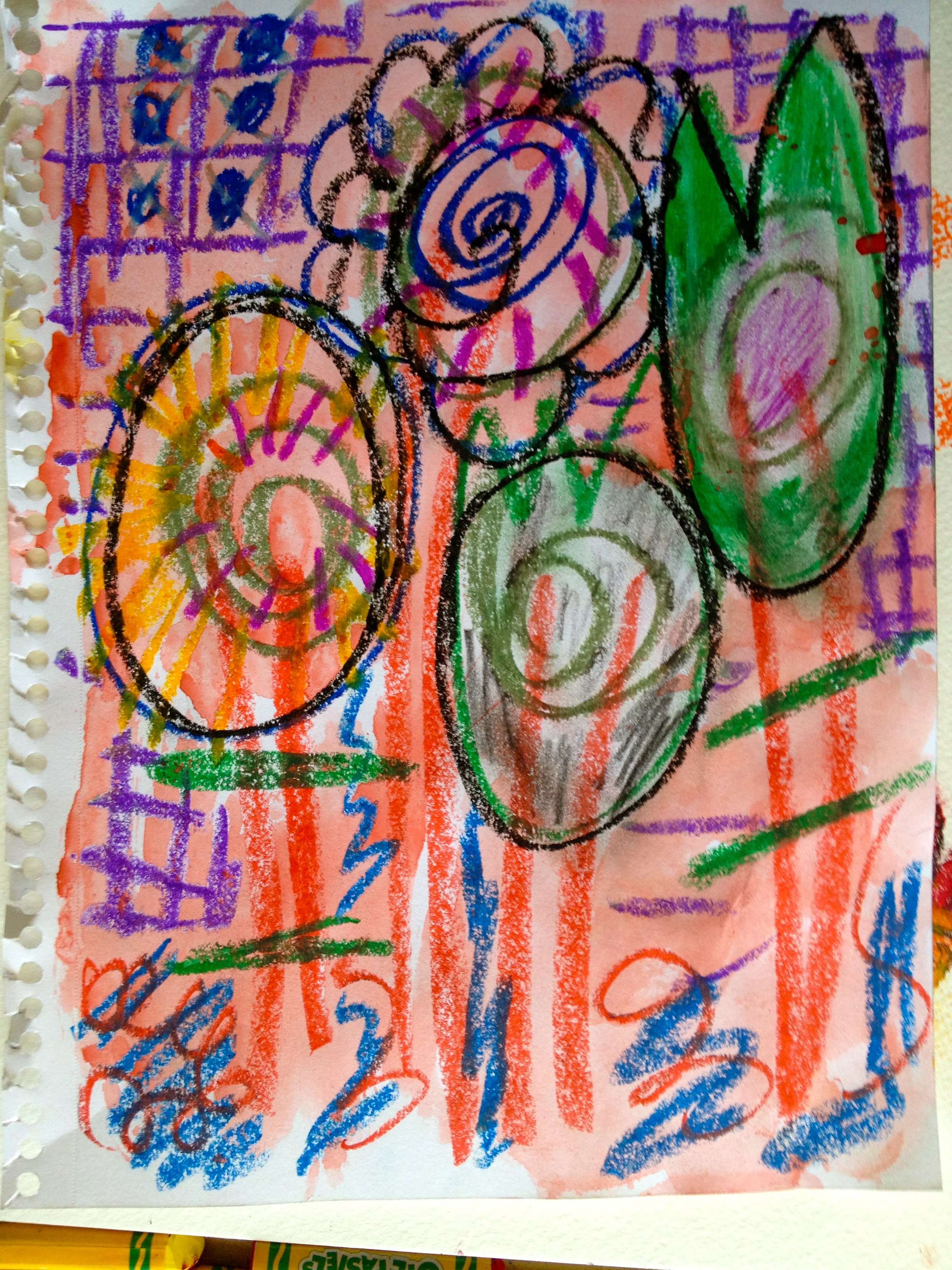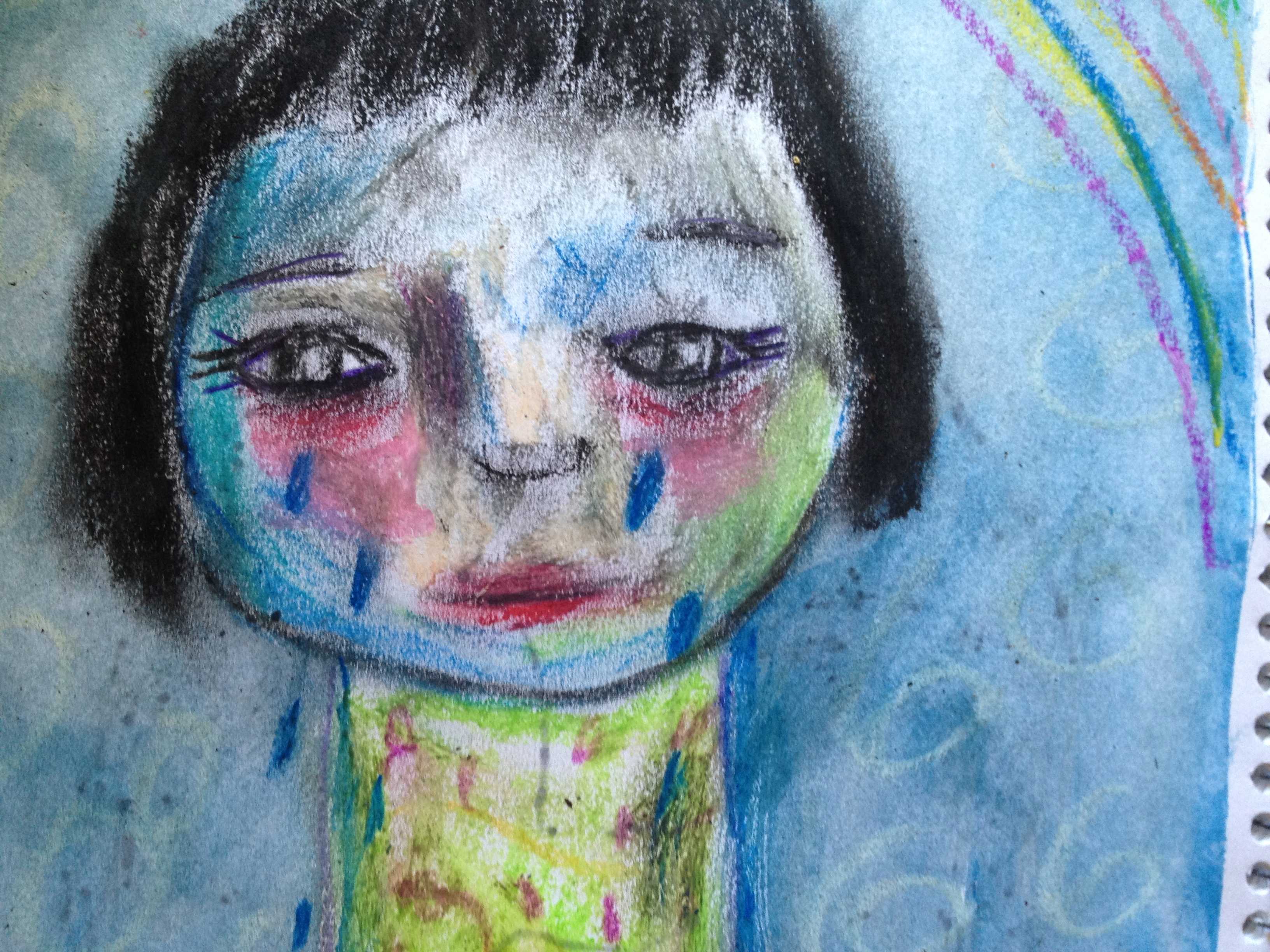 Finally. . . first attempts at painting faces using oil pastels. . .