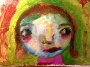 Now, the scary part. Adding a face onto a background.  My fear – mess up a beautiful background with a crappy face.  But, I’ve learned that there are no errors.  If you don’t like something, you just paint over it and try something else.